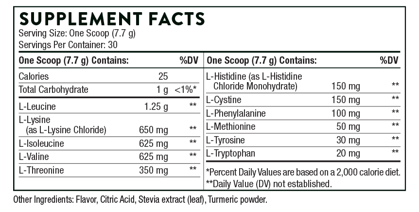 Amino Complex: Mix 1 scoop with at least 8 ounces of water one to two times daily, or as recommended by a health-care or performance professional.