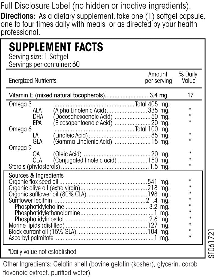 PERQUE Triple EFA Guard™ contains the best balance (4:1) of omega-3 to omega-6 essential fatty acids (EFAs), along with the beneficial omega-9 EFA and the most potent docosahexaenoic acid (DHA)/ conjugated linolenic acid (CLA) combination. Finally, a product with the essential oils you need.