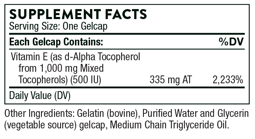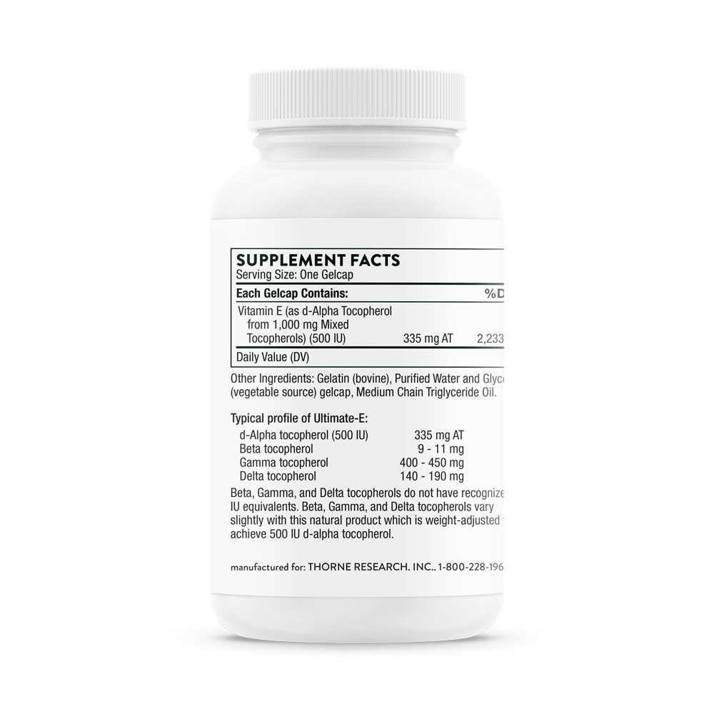 Ultimate E contains a mixture of all tocopherols and utilizes molecular distillation to remove allergenic soy residues. Vitamin E is a vital antioxidant, and has been shown to benefit the cardiovascular system.*