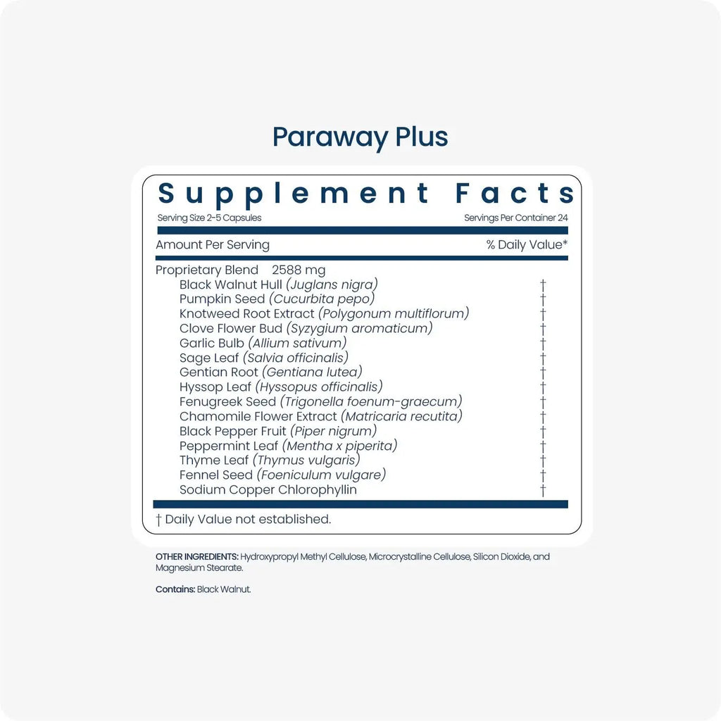 Paraway Plus: Take two capsules every morning for the first 10 days, then five capsules every morning for the next 20 days.