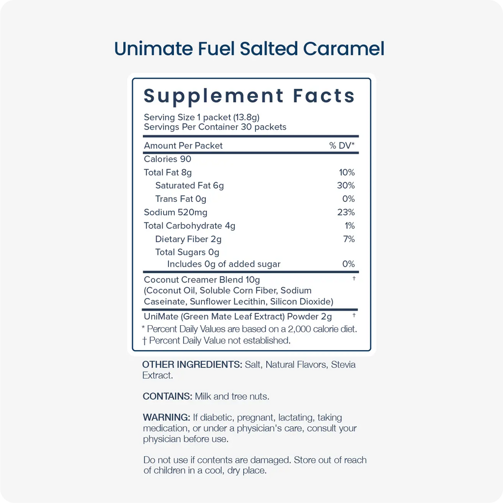 Unimate Fuel combines a potent yerba mate extract with MCTs from coconut oil for a creamier Unimate flavor and to provide an extra energy boost for both body and mind. Have more of the great days with Unimate Fuel.