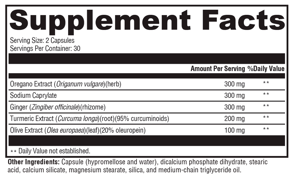 Candicidal™ offers a complementary blend of herbs, essential oils, and sodium caprylate, a naturally occurring fatty acid. Candicidal is formulated to support the body’s immune system as well as a healthy gastrointestinal (GI) flora. This comprehensive formula contains herbs to support digestion and a healthy GI system.*