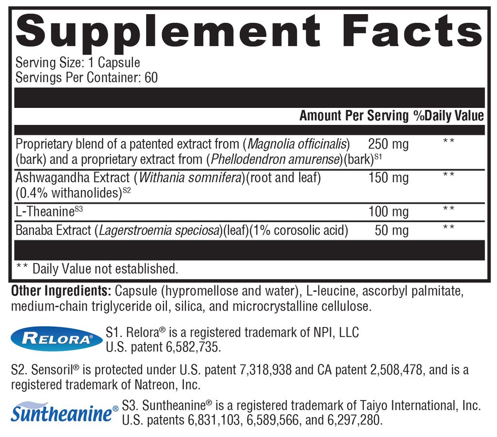 Cortisolv® helps your body resist and recover from the e ects of everyday stress. Components of this multifunctional formula have been shown to support healthy cortisol levels, help alleviate occasional fatigue, promote mental clarity, and support relaxation and restful sleep.*