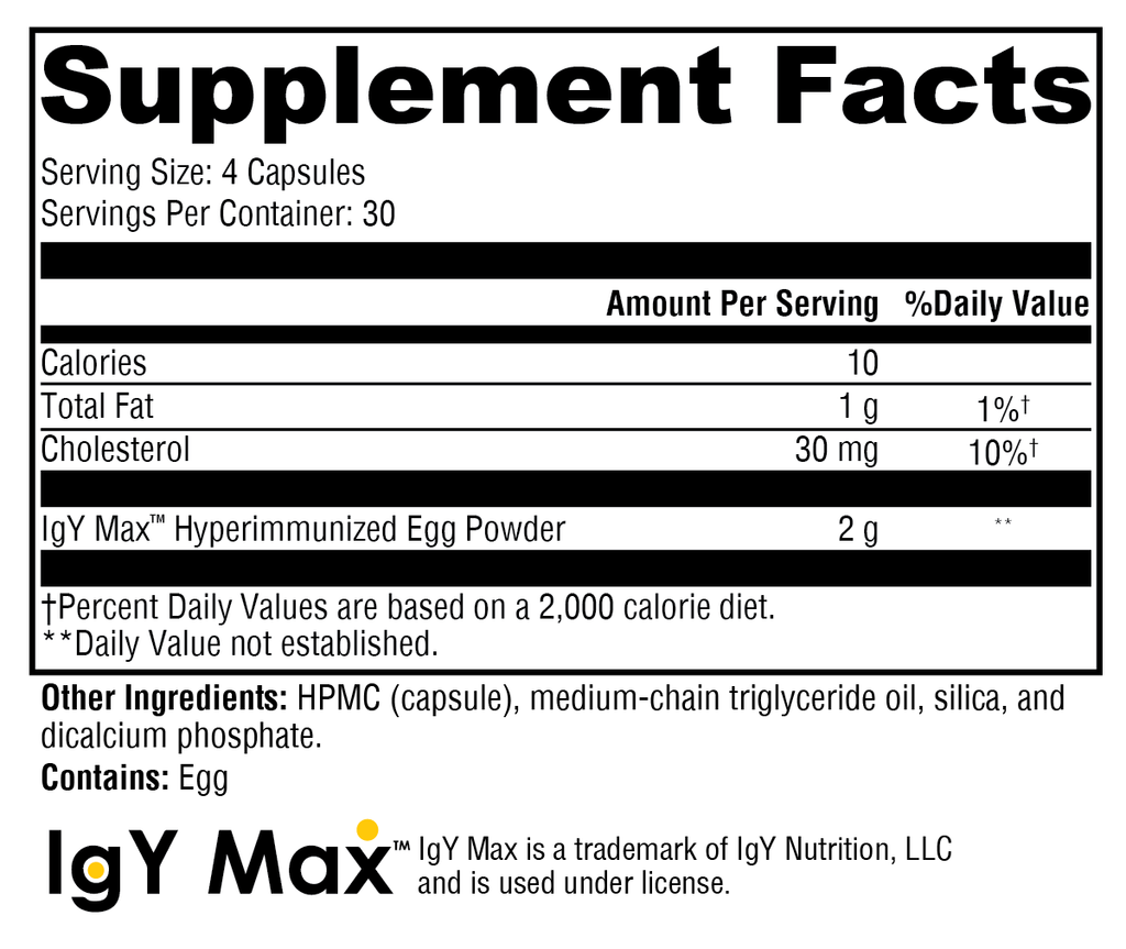IG 26 DF contains self-affirmed GRAS IgY Max™, which provides IgY immunoglobulins and immunoregulating molecules from hyperimmune chicken egg. Research suggests that this dairy-free source of immunoglobulins and immune cofactors helps support immune function in the intestine and a healthy intestinal environment. These benefits positively impact extraintestinal health. Preliminary research also suggests a role for the formula’s immunoregulating molecules in cytokine modulation and in sports recovery applications.*